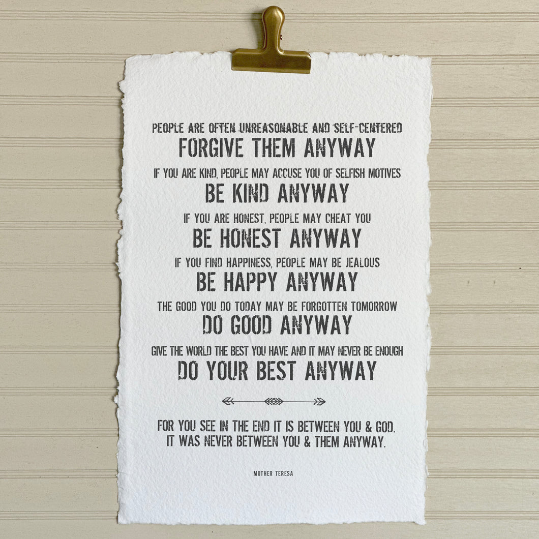 Mother Teresa Do It Anyway Poem Print 4×6 5×7 8×10 11×14 Etsy Sweden
